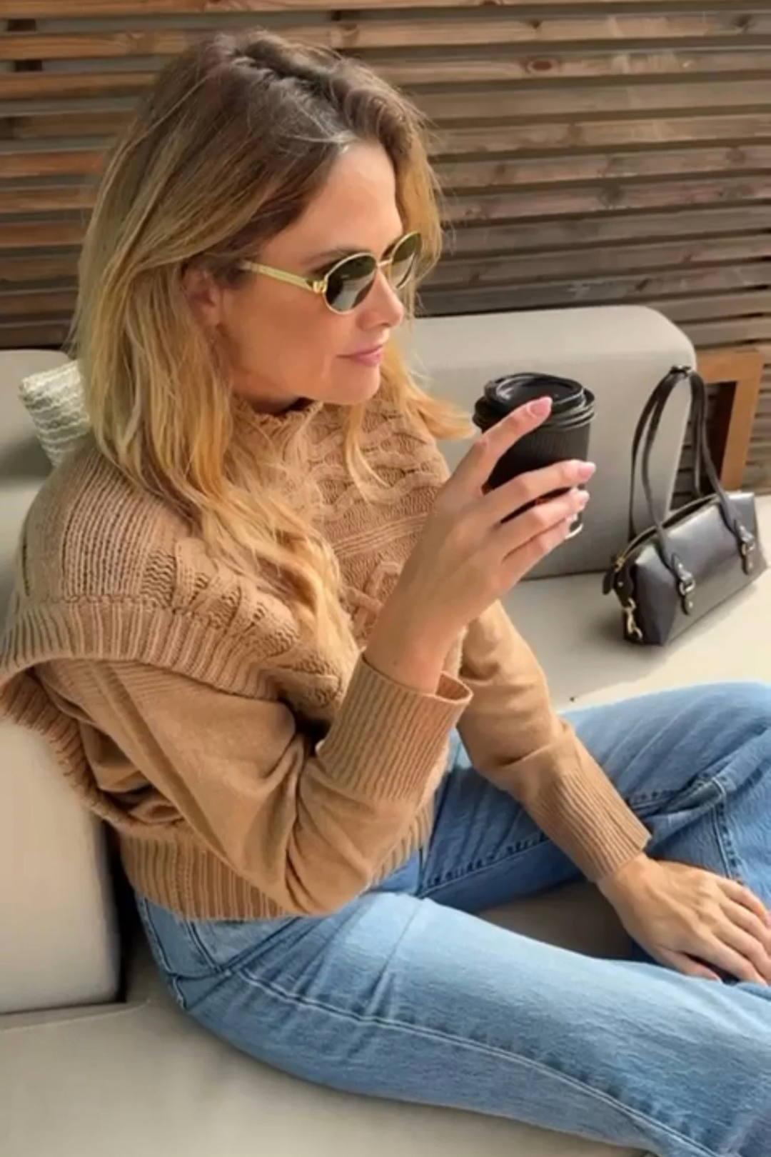 Dames Vest met kabelmotief in cashmere camel | Alix
